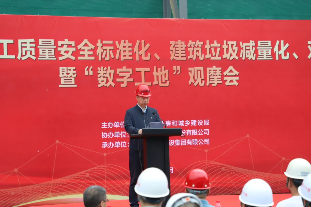 6月21日,由市住房和城鄉(xiāng)建設(shè)局主辦,黑龍江牡安建設(shè)集團(tuán)承辦的“牡丹江市建筑施工質(zhì)量安全標(biāo)準(zhǔn)化、建筑垃圾減量化、雙重預(yù)防機(jī)制暨數(shù)字工地觀摩會(huì)”在牡安集團(tuán)承建的恒豐紙業(yè)項(xiàng)目隆重舉行。市住建局副局長(zhǎng)畢傳鵬、市工程質(zhì)量技術(shù)服務(wù)中心主任孫勇、黑龍江牡安建設(shè)集團(tuán)董事長(zhǎng)、總經(jīng)理張秋以及市住建局、各縣(市)、開發(fā)區(qū)住建局、質(zhì)量安全中心(站)的有關(guān)領(lǐng)導(dǎo)、市區(qū)在建項(xiàng)目的各位同仁參加了本次活動(dòng)。